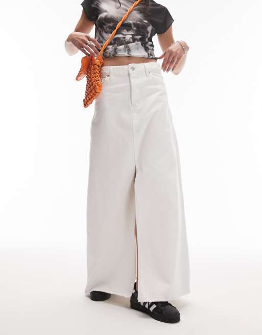 Topshop low slung denim maxi skirt in white