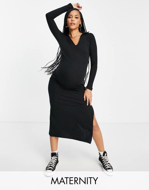 Topshop Maternity collared jersey midi dress in black