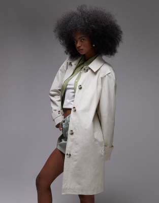 Topshop mid length trench coat in ecru