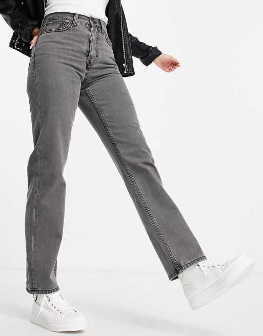 Topshop mid rise straight Dad jeans in smoke grey