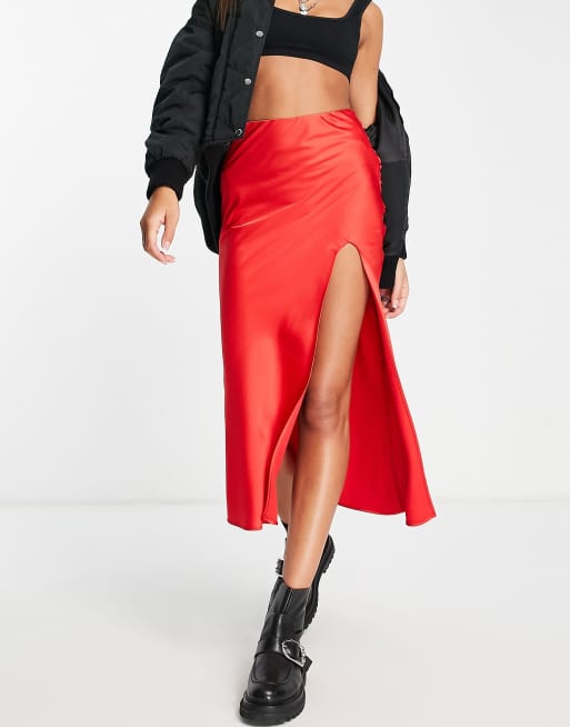 Topshop midi satin slip skirt in red