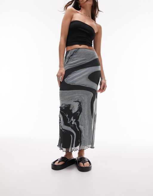 Topshop midi skirt with large marble placement monochrome print