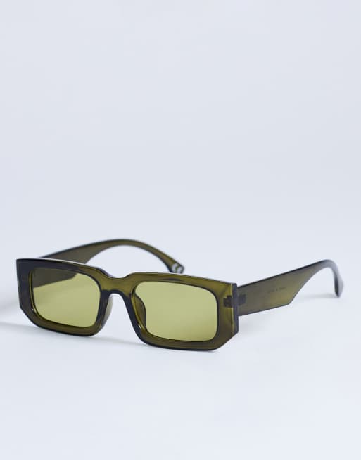 Topshop Milan rectangle sunglasses in olive green