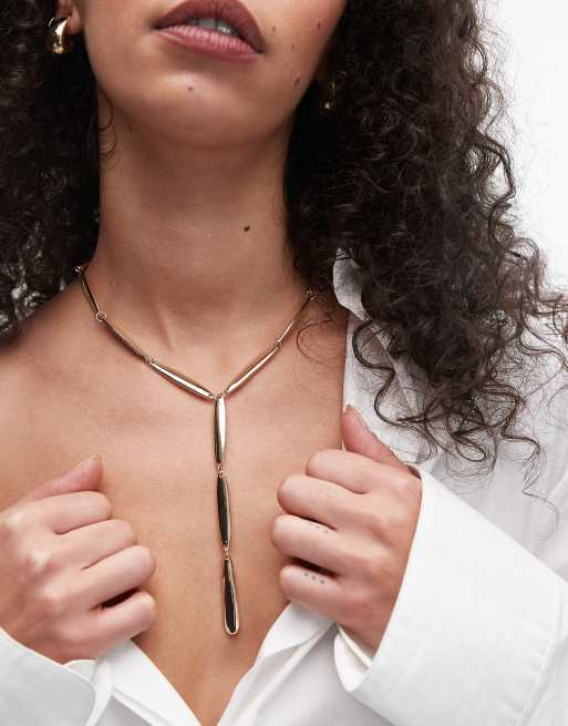 Topshop Nelia statement lariat necklace in gold tone