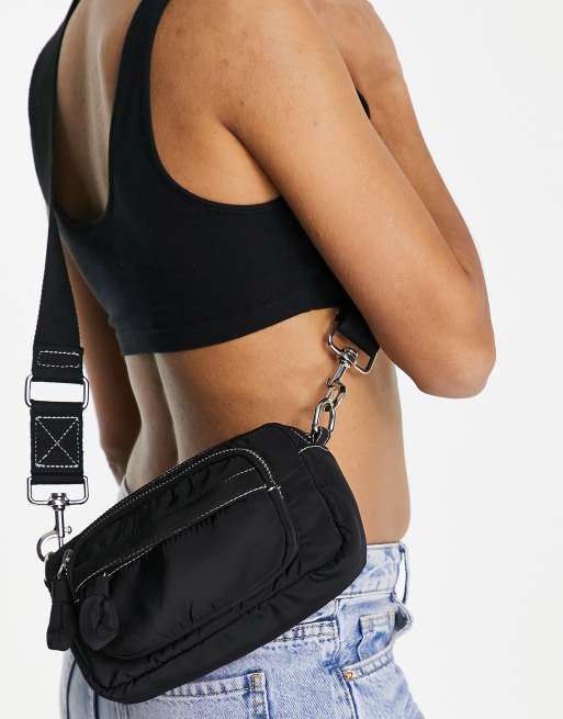 Topshop nylon stitch crossbody in black - BLACK