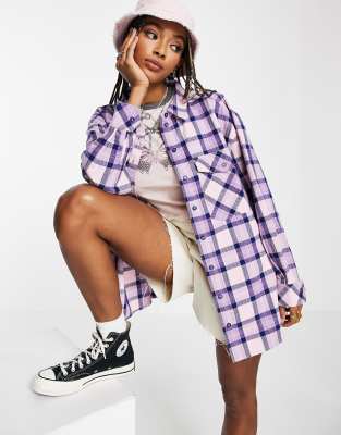 Topshop oversized check shirt in lilac