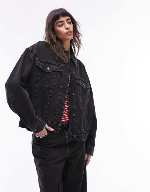 Topshop oversized denim jacket in washed black