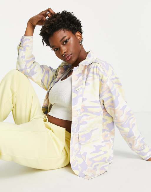 Topshop oversized lightweight shacket in pastel camo print