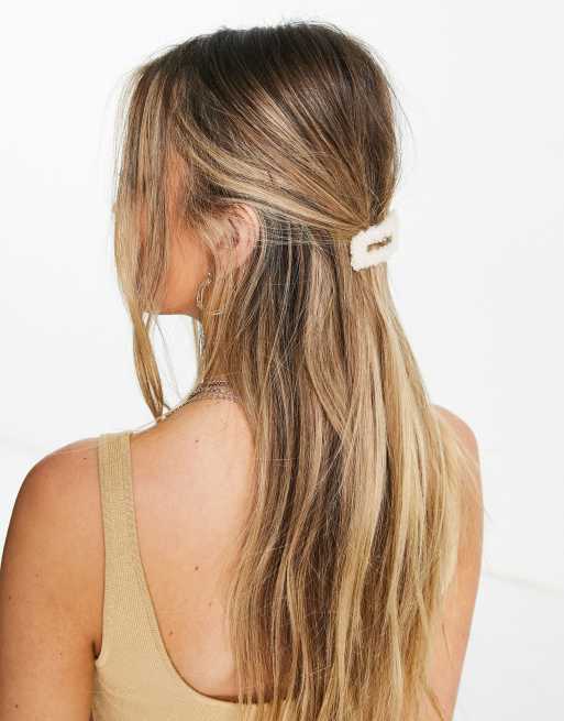 Topshop oversized snap barrette hair clip in beige teddy