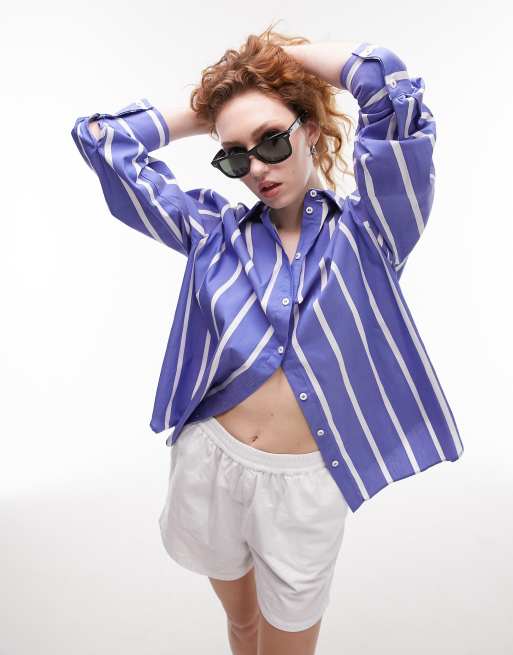 Topshop oversized wide stripe shirt in blue