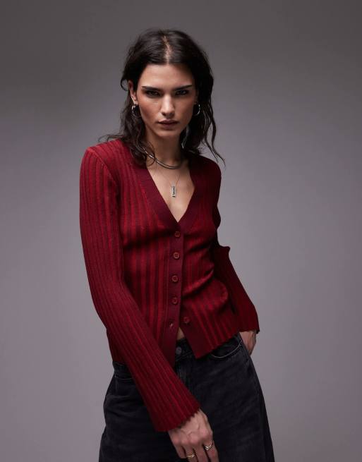 Topshop plated knit cardigan in red & burgundy