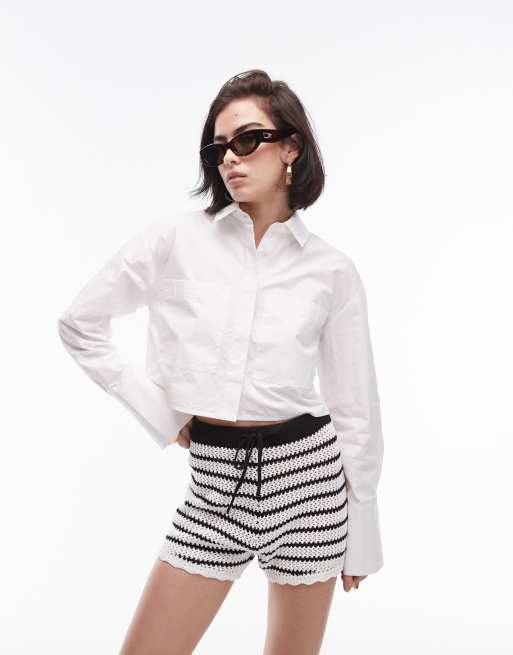 Topshop poplin cropped shirt in ivory