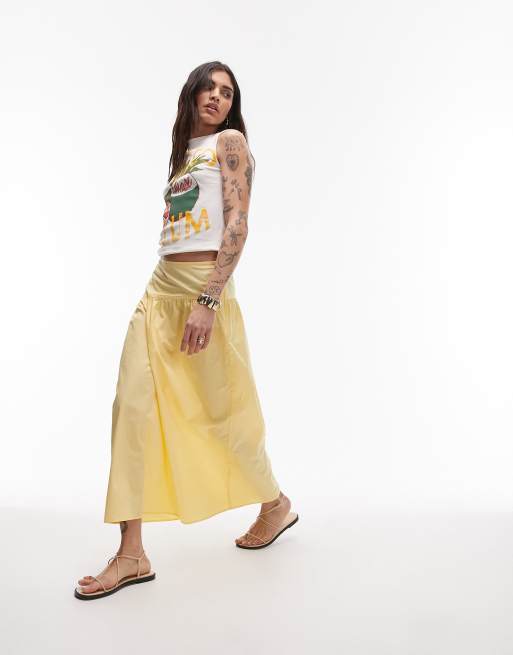 Topshop poplin full skirt with curved dropped waistband in yellow