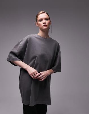 Topshop premium basic acid wash oversized longline crew neck tee in washed black
