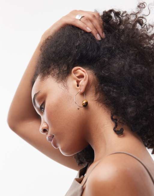 Topshop Priya teardrop hoop earrings with semi precious stone in silver and brown