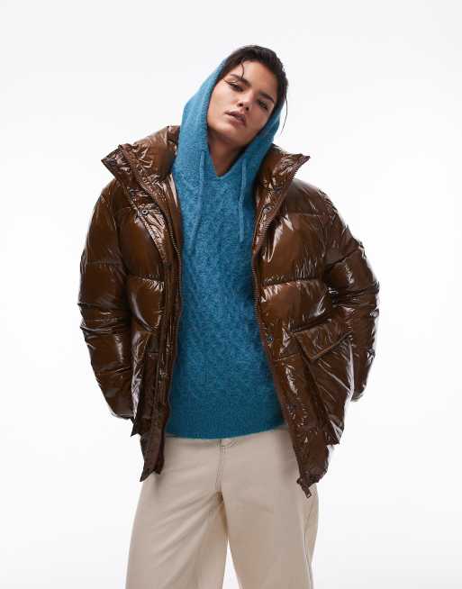 Topshop puffer bomber jacket in choc