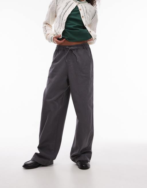 Topshop pull on tie waist trouser in charcoal