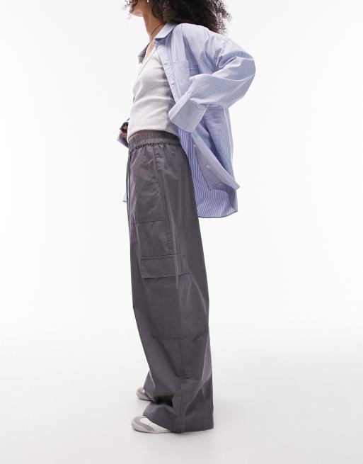 Topshop pull on wide leg trouser with cargo pockets in charcoal