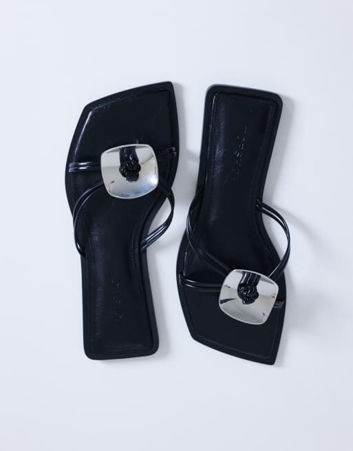 Topshop Rolo hardware detail flat sandal in black