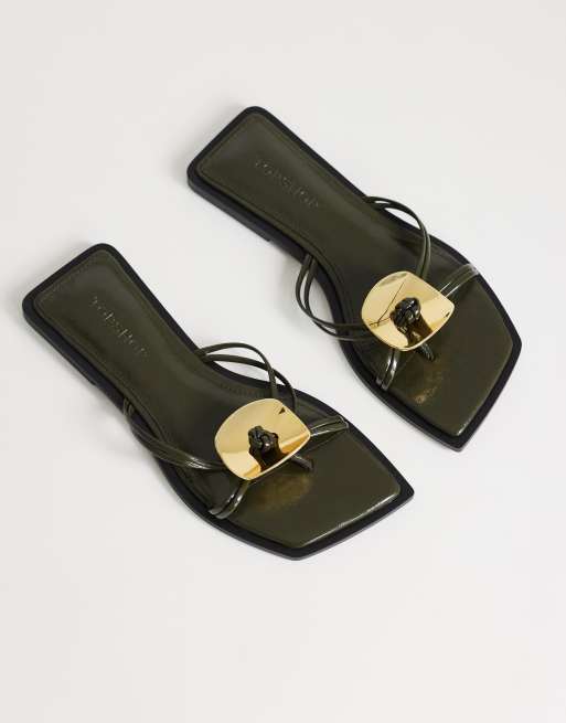 Topshop Rolo hardware detail flat sandal in olive