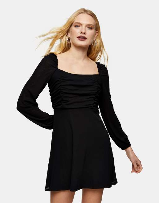 Topshop ruched mini skater dress in black