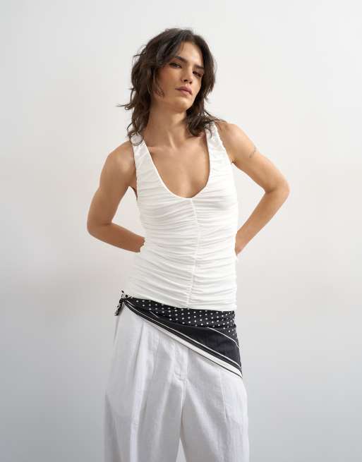 Topshop ruched v-neck tank top in ivory