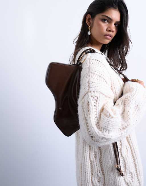 Topshop Sarah whipstitch shoulder bag in chocolate