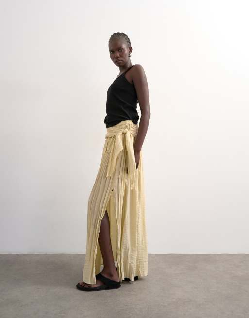 Topshop sash tie crinkle full maxi skirt in natural