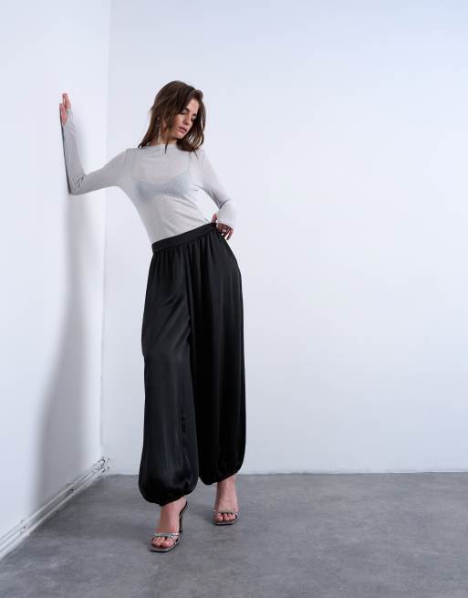 These trousers are crafted from a drapey satin-style fabric in a plain design. They feature a high-rise waist, deep waistband and are cut with a balloon leg.Product Code: 150555158