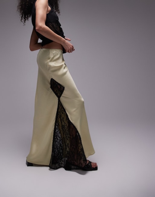 Topshop satin lace mix co-ord in pistachio