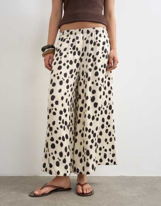 Topshop satin pull on A-line wide leg trouser in abstract animal