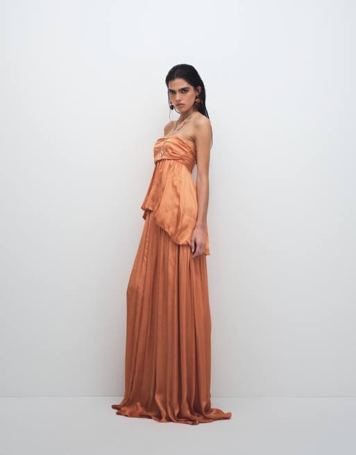 Topshop satin sleeveless asymmetric drape maxi dress in yellow