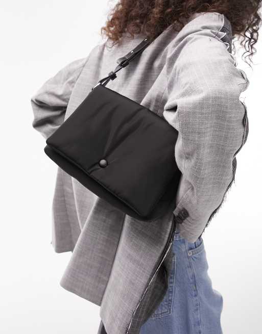 Topshop Sheena puffy button shoulder bag in black