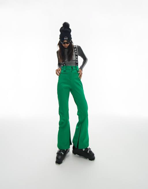 Topshop Sno flared ski trouser with braces in green