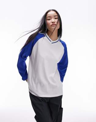 Topshop sporty skater colourblock long sleeve tee in cobalt