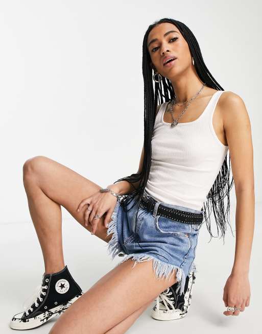 Topshop square neck rib vest in rose