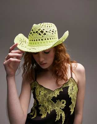 Topshop straw cowboy hat in lime