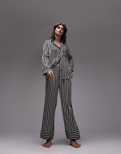 Topshop stripe piped shirt and trouser pyjama set in monochrome