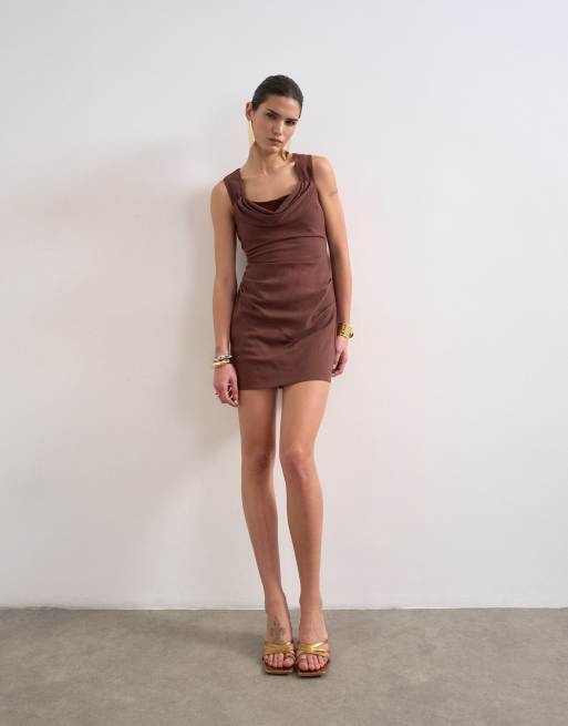 Topshop structured drape mini dress in chocolate