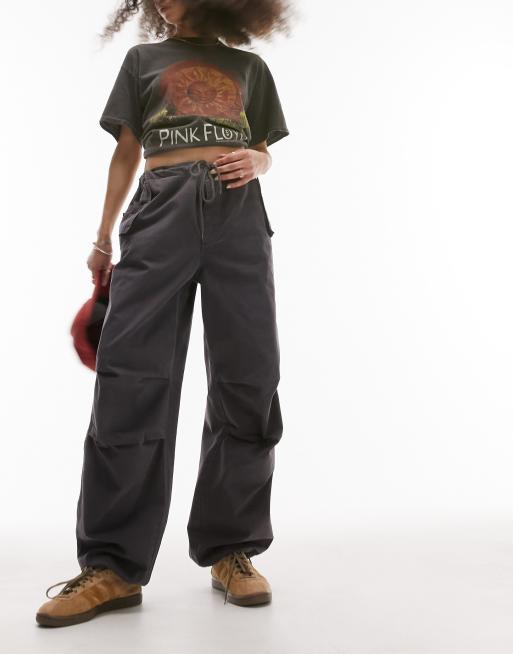 Topshop super oversized cotton parachute cargo pants in charcoal