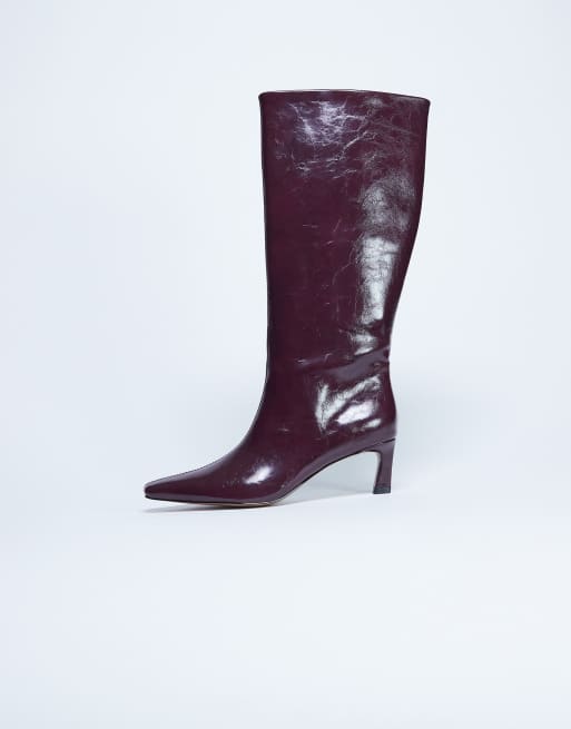 Topshop Tanya point toe knee high boot in burgundy