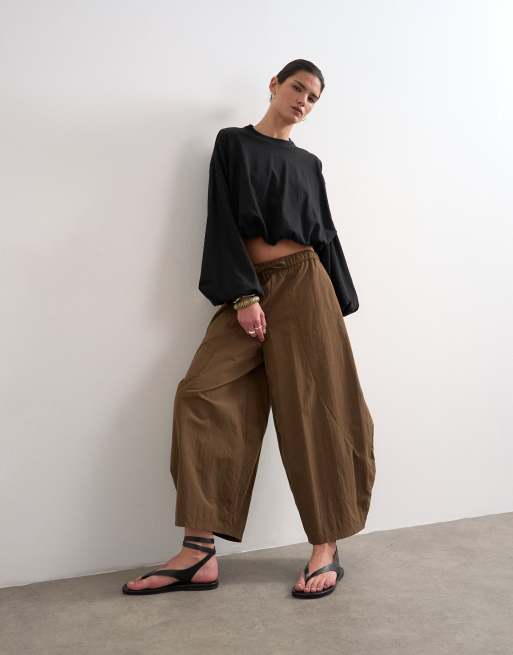 Topshop techy oversized ovoid mid length trouser in chocolate