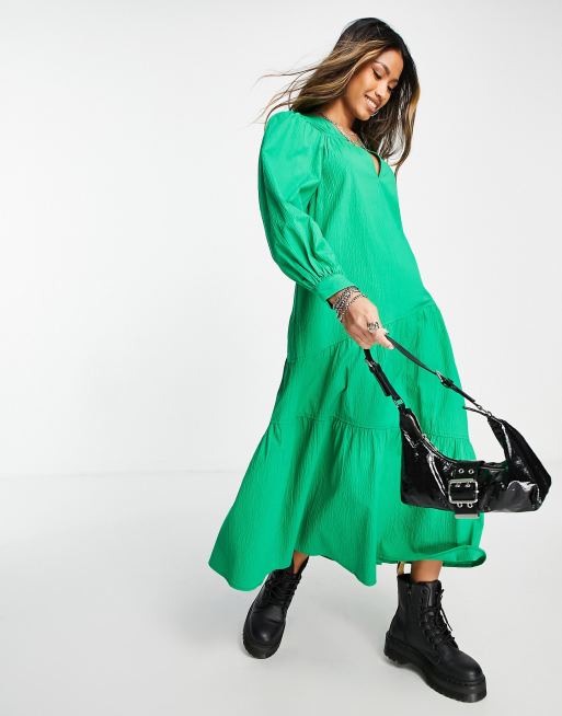 Topshop textured poplin chuck on dress in green