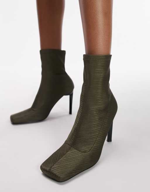 Topshop Tia high heeled sock boot in khaki