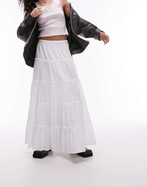 Topshop tiered western full maxi skirt in white