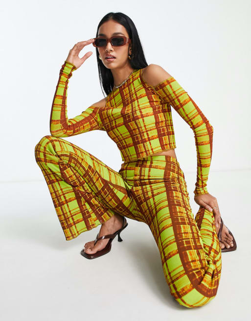 Topshop tissue mesh co-ord in green grunge check