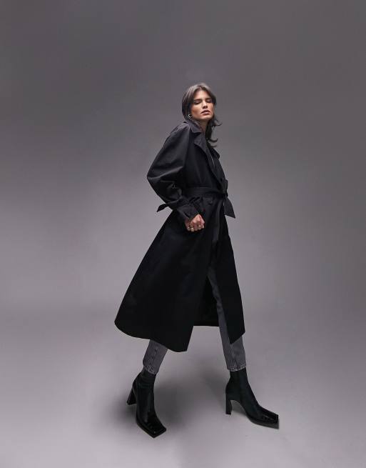 Topshop washed trench coat in black