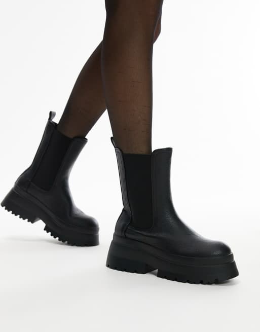 Topshop Wide Fit Lake chunky chelsea boot in black