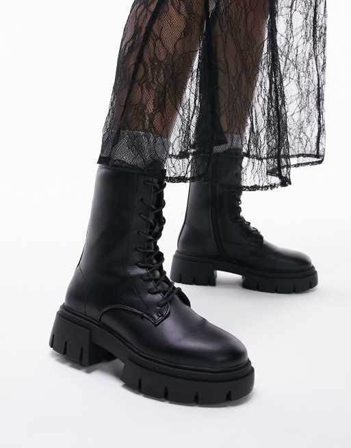 Topshop Wide Fit Lydia chunky lace up boot in black