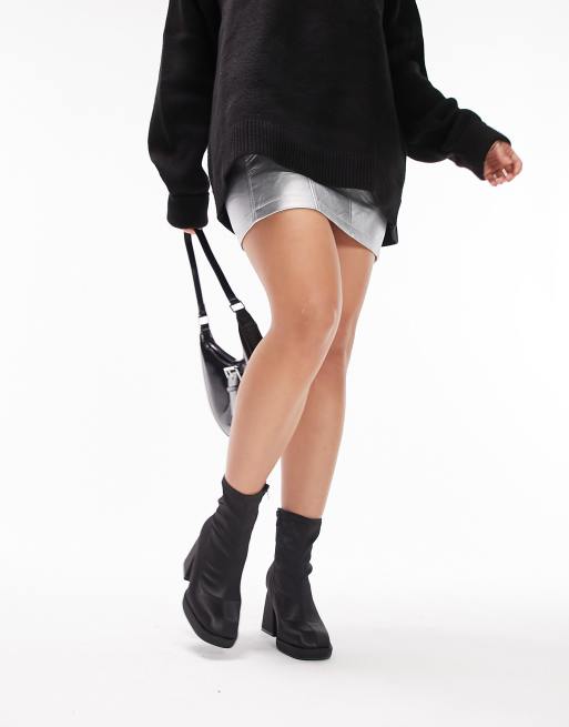 Topshop Wide Fit Tiff satin block heeled ankle boot in black